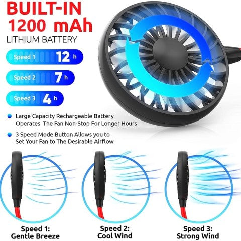 our necklace cooling fan allows you to do whatever you want and enjoy cool breeze while working in the office or exercising in the gym, doing outdoor sports activities, like camping, hiking, climbing, beach etc. Great for traveling.
